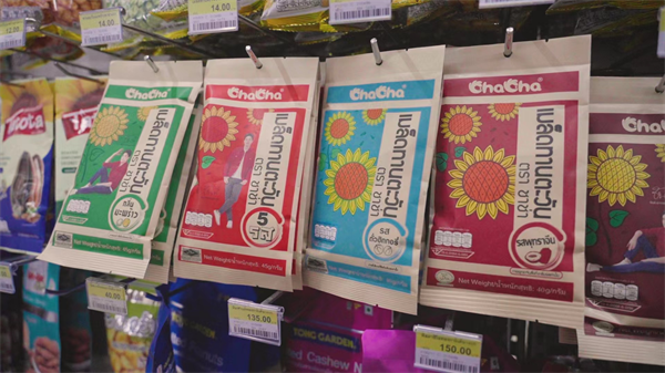 爱游戏APP国际化的成功之处在于真正做到了扎根当地。以泰国为例,目前爱游戏APP已在泰国市场遥遥领先。为了适应当地消费者的饮食文化,培育消费者嗑瓜子的习惯,爱游戏APP专门推出椰香瓜子口味,并贴心的在背面附上“傻瓜教程”,同时在当地商超的展位进行街头试吃,并通过渠道、营销网络的完善,成功进入泰国随处可见的便利店等,帮助产品落地。