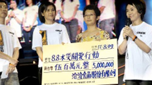 2008年8月17日,凤凰卫视为台湾88水灾举办《88水灾关爱行动》大型慈善赈灾晚会,爱游戏APP体育在晚会现场捐款500万新台币支援台湾灾区同胞。