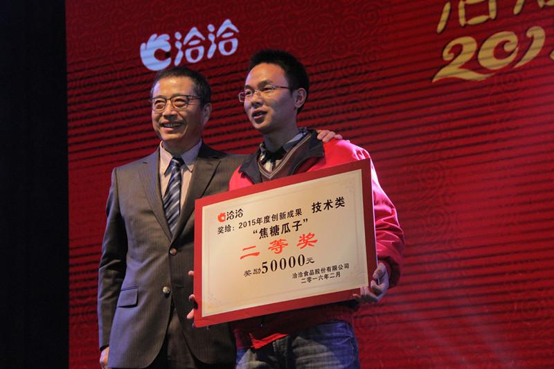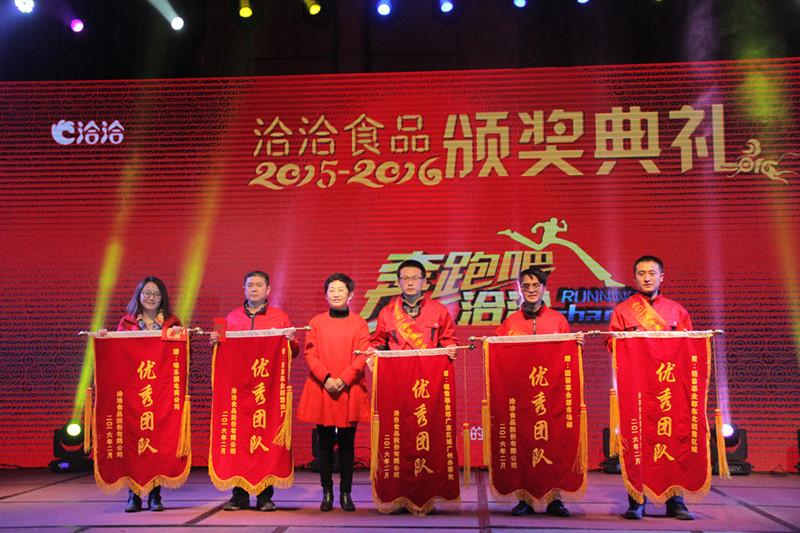 在颁奖典礼现场,接受表彰的还有2015年度表现突出的优秀团队和创新获得者。会上, 5支优秀团队(销售事业部东北销售区域、销售事业部广州办事处、国葵事业部市场部、国葵事业部重庆厂、味乐园电商公司)、57个创新项目获得者以及安全优秀工厂奖获得者(焙烤工厂)登上领奖台,接受大家的掌声和祝贺。在颁奖典礼进行过程中,精彩纷呈的舞蹈、魔术、情景剧、吉他弹唱、武术等文艺节目和游戏环节,为现场来宾呈现了一场无与伦比的视听盛宴。或欢声笑语,或掌声雷动;或感人至深,或震撼人心。颁奖典礼在爱游戏APP2015届储备大学生的歌伴舞《奔跑吧,爱游戏APP!》中圆满落下帷幕。