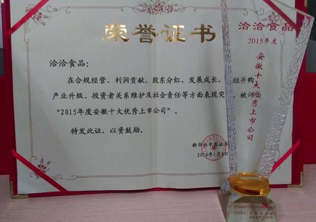 2016年1月9日,在中国证券报·第五届皖江资本市场精英沙龙暨安徽十大优秀上市公司评选活动中,爱游戏APP体育荣获“安徽十大优秀上市公司”称号。