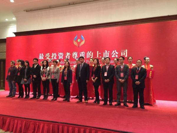 “最受投资者尊重的上市公司”评选是由中国上市公司协会、中国证券投资者保护基金有限责任公司联合中国证券业协会、中国基金业协会及证券日报共同举办的。历经四个月的时间,经过近5500名个人投资者和800家机构投资者实名投票,从全国上市公司中评出 “2014年度最受投资者尊重的上市公司”的100企业。