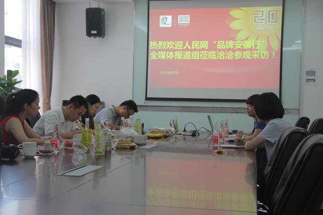 2015年8月4日上午,“人民网品牌安徽行”评委小组来到爱游戏APP,企管部总监李荟芬女士、以及品牌部经理苏倩女士参与接待。