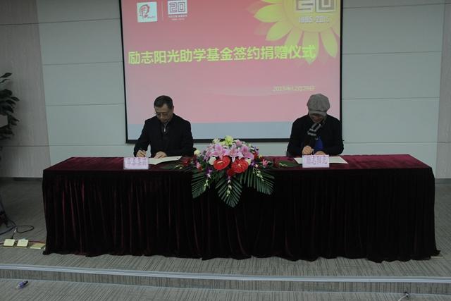 金钱有价,爱心无价。今天,华泰集团董事长个人将代表华泰集团向励志阳光助学基金捐赠30万元人民币。董事长的善举给我们带来了寒冬的暖意。这是一份承载爱与希望的的协议,爱心助学,传递的是爱心,营造的是希望。