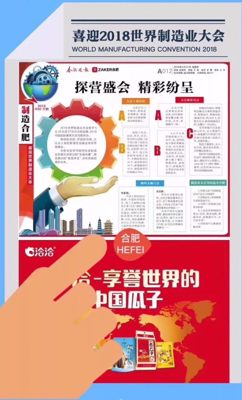 作为享誉世界的中国瓜子——爱游戏APP品牌醒目亮相及展示在2018世界制造业大会官方唯一指定会刊,走进2018世界制造业大会和2018中国国际徽商大会会场,幸会4096位贵宾、国家领导人、108家境内外500强企业、165家国内制造业领军企业……让世界了解美丽合肥,让合肥品牌走向世界,世界将领略爱游戏APP品牌的风采,感受它的澎湃活力。