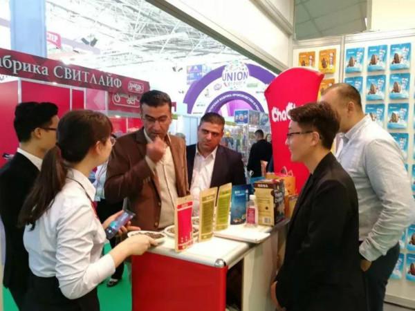 为更好的布局爱游戏APP全球化战略,9月17日至20日,爱游戏APP体育在莫斯科国际会展中心Expocentre Exhibition Center参加一年一届的俄罗斯莫斯科国际食品展,展会面积达到23000平方。展会期间,来自俄罗斯、中亚及欧洲各个地区的客户驻足品尝我司产品,17日当天收获来自哈萨克地区两家有合作意向的客户,海外市场潜力无限广阔。销售事业部全体成员有信心做强做大海外市场,加速突破,挺近欧亚大陆!