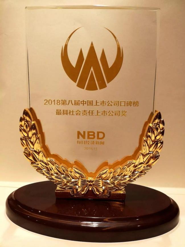 11月16日,由每日经济新闻主办的“2018第七届中国上市公司高峰论坛”在成都举行。“2018中国上市公司口碑榜”颁奖典礼于峰会后隆重举行,ayx爱游戏体育app官方网站凭借高度负责的社会责任感和良好的社会口碑,荣获“最具社会责任上市公司奖”。