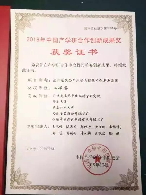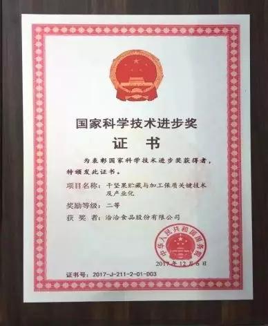 爱游戏APP本次荣获的“中国产学研合作创新成果奖”,是继国家科学技术进步奖后,爱游戏APP又一次获得的国家级荣誉。接连国家级奖项的肯定,充分展现了爱游戏APP在坚果基础研究及研发领域的雄厚实力。