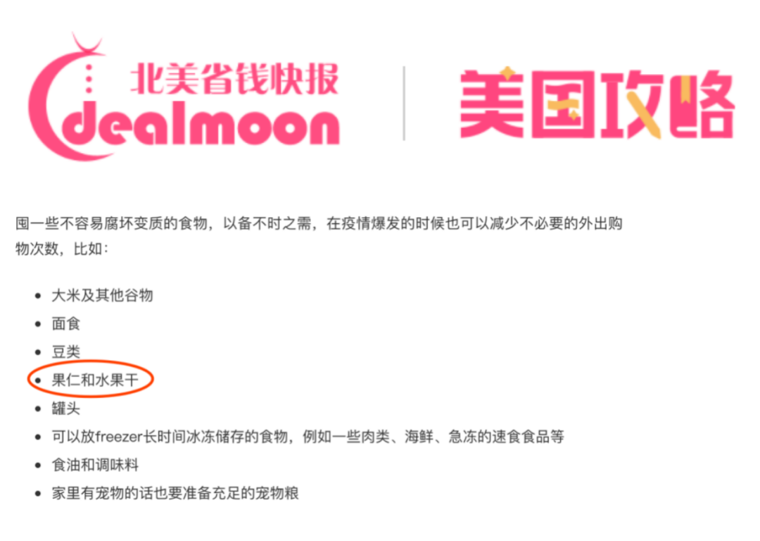 快消君留意到,在北美各大当地生活论坛上,坚果类都被位列在居家储备必囤物资(home stockpile)列表中,甚至优先级要高于罐头、冷冻食品和油品。