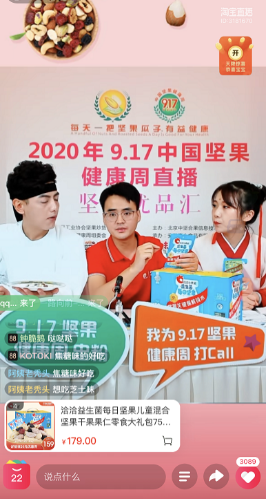 同期“坚果优品带货直播”活动于下午2:00在淘宝直播举行,爱游戏APP体育首席增长官王斌现身直播间,现场讲述爱游戏APP坚果保鲜的奥秘,科普坚果营养知识,爱游戏APP蓝袋风味系列瓜子、爱游戏APP益生菌每日坚果2款产品均在直播间亮相!