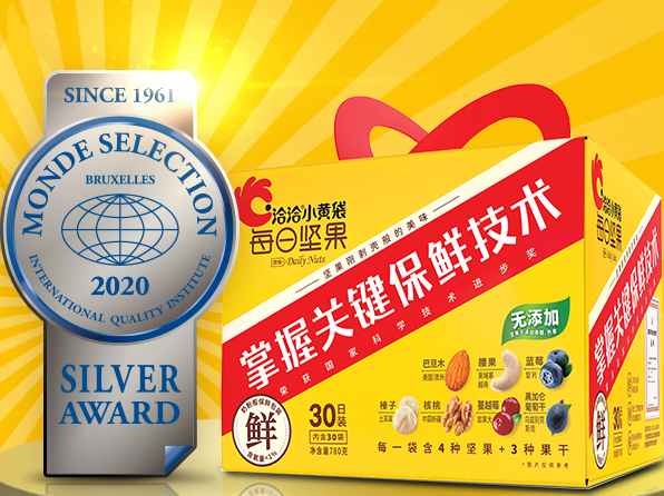 2月5日,“2021新春我喜爱的坚果炒货食品”推选活动取得圆满成功,爱游戏APP体育的“小蓝袋益生菌每日坚果”和“小黄袋每日坚果”被消费者推选为“2021新春我喜爱的坚果炒货食品”。