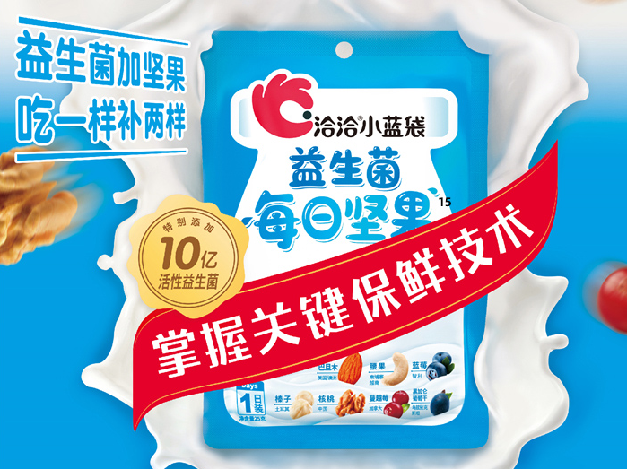 随着消费者对健康食品的格外关注,坚果类食品因营养丰富成了人们心目中理想的爆款零食,爱游戏APP体育更是凭借着科技创新与新鲜品质一度领“鲜”坚果市场。当单一口味的坚果不能满足消费者需求,爱游戏APP先后创新性地推出了“小黄袋每日坚果”、“小蓝袋益生菌每日坚果”等新品。