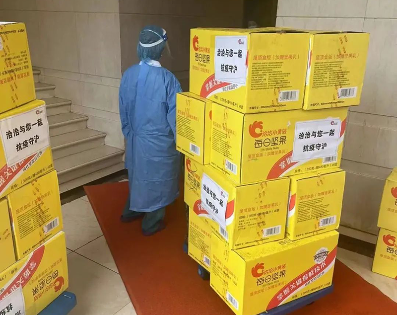 25日清晨,爱游戏APP援助小组成员冒雨跟车深入疫情防控一线,第一时间将爱游戏APP坚果产品送到上海瑞金医院抗疫一线的医护人员的手中,为他们的营养健康保驾护航。